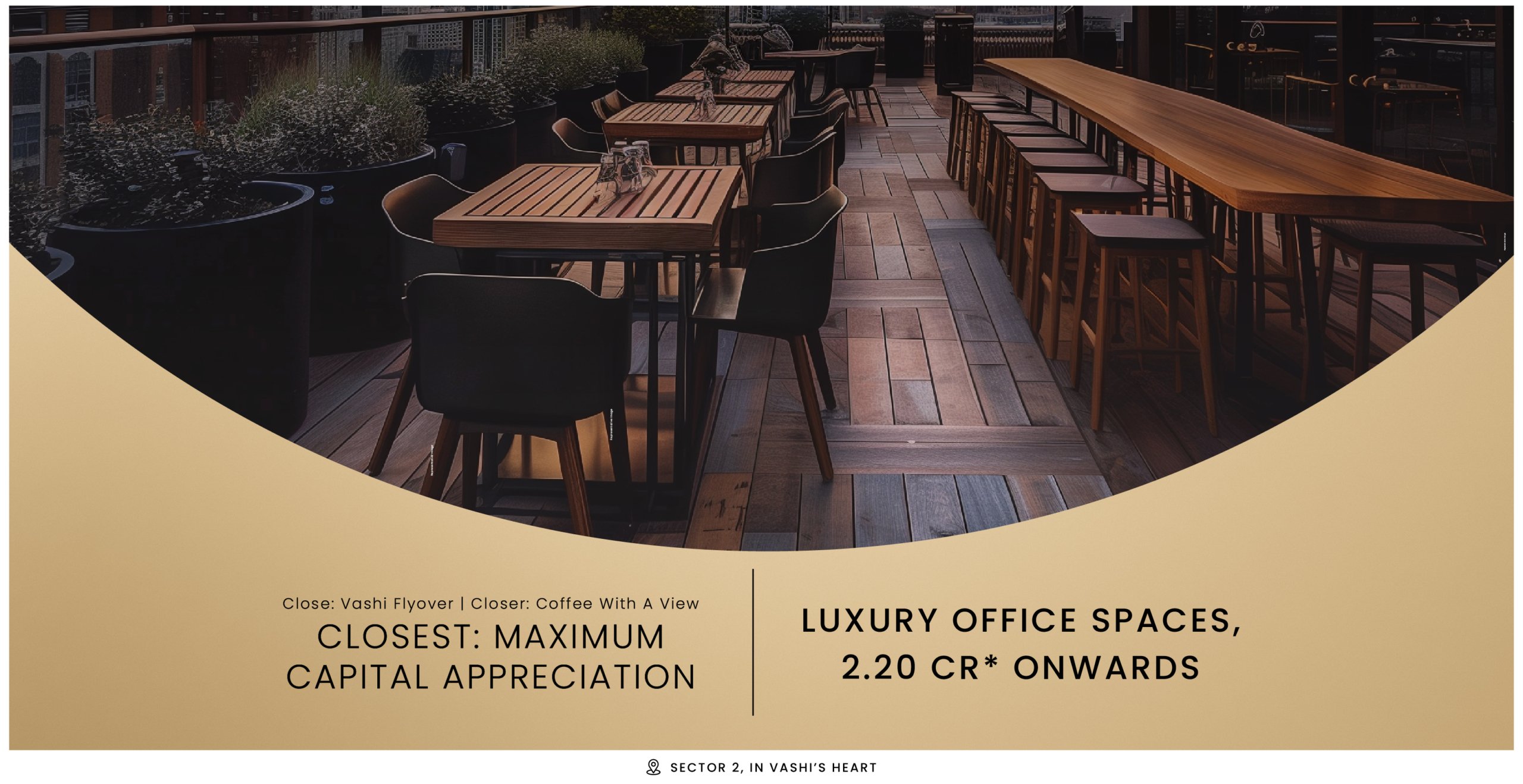 Strategically located in Vashi, Navi Mumbai, the project enjoys excellent connectivity to key business and residential areas. With Vashi Railway Station in close proximity and seamless access to the Sion-Panvel Highway, Level 23 ensures effortless connectivity to Mumbai, Thane, and Panvel Commercial office space in vashi.
